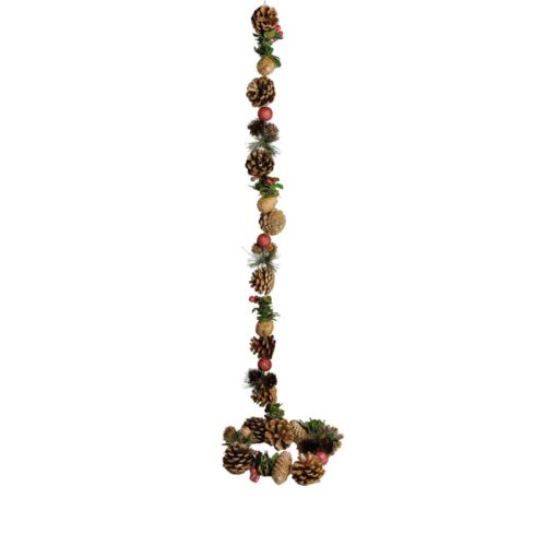 NATURAL PINECONE/RED BERRY GARLAND w/BELLS 150cm